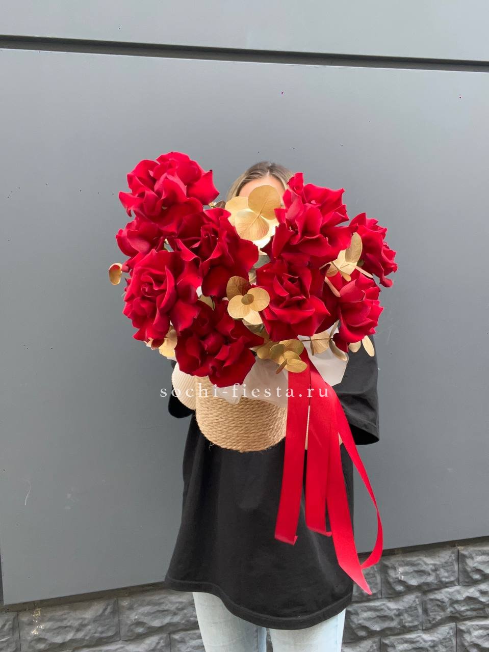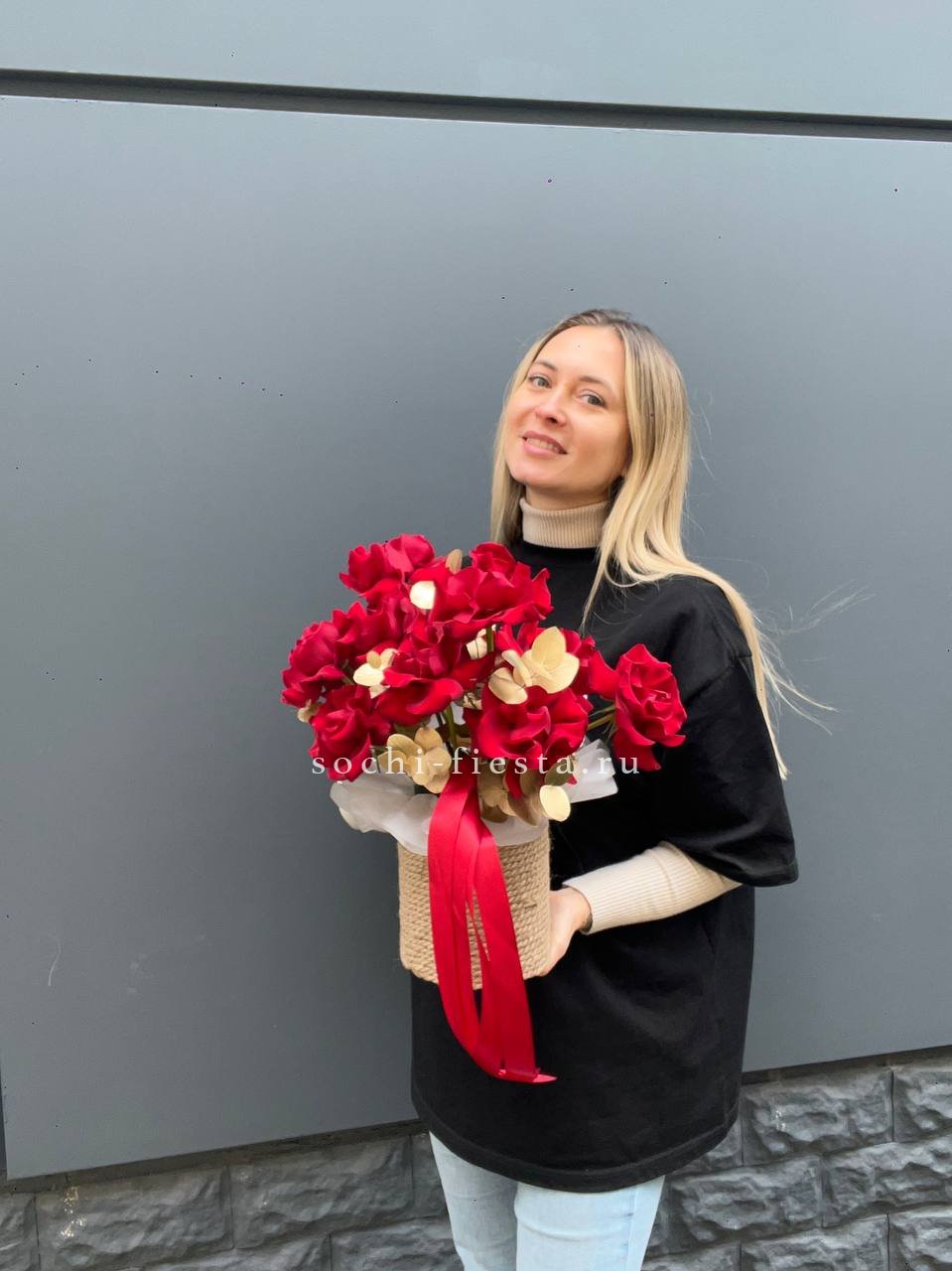 27 роз, пленка, лента.