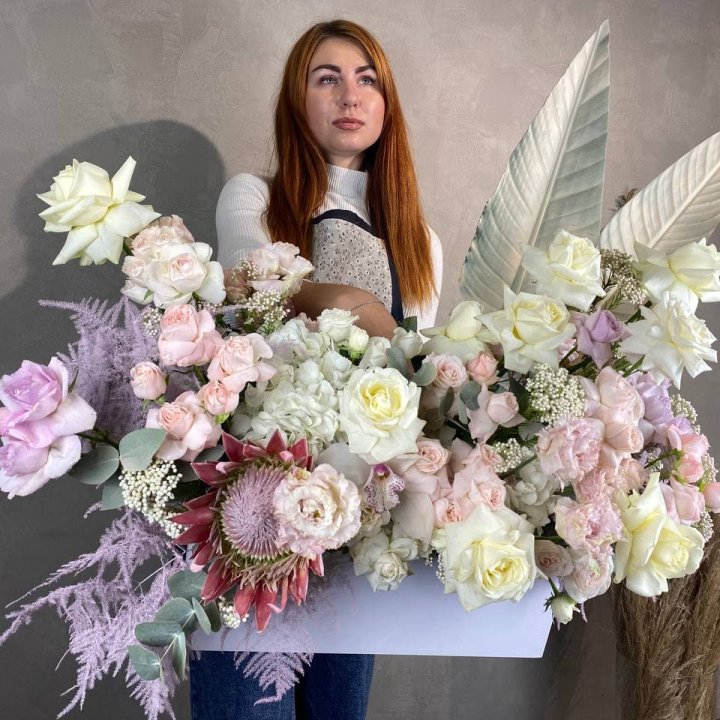 Авторские букеты гиганты в Стерлитамаке — формат для тех событий в жизни города, когда обычного букета недостаточно. Юбилей 50 лет, свадьба, открытие бизнеса, значимое корпоративное поздравление — именно к таким поводам клиент заказывает гигантский авторский букет, который невозможно не заметить. Флорист в Стерлитамаке создаёт авторские букеты гиганты из 101 и более роз, пионовые гиганты в сезоне, корзины-гиганты для торжественных вручений. Именно масштаб флористического жеста делает момент незабываемым для получателя и всех присутствующих.