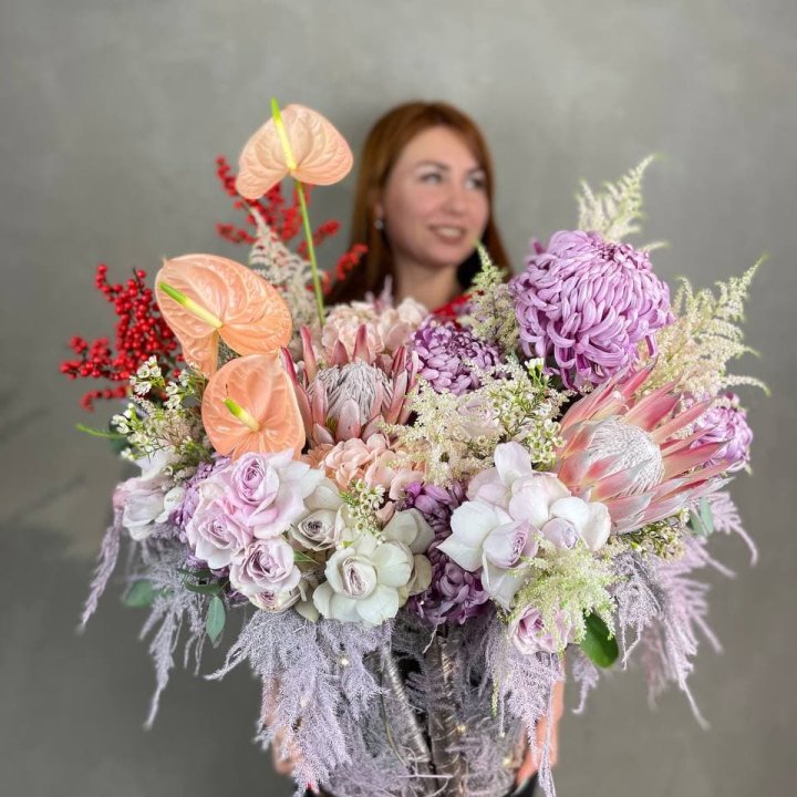 Авторские букеты гиганты в Стерлитамаке — формат для тех событий в жизни города, когда обычного букета недостаточно. Юбилей 50 лет, свадьба, открытие бизнеса, значимое корпоративное поздравление — именно к таким поводам клиент заказывает гигантский авторский букет, который невозможно не заметить. Флорист в Стерлитамаке создаёт авторские букеты гиганты из 101 и более роз, пионовые гиганты в сезоне, корзины-гиганты для торжественных вручений. Именно масштаб флористического жеста делает момент незабываемым для получателя и всех присутствующих.