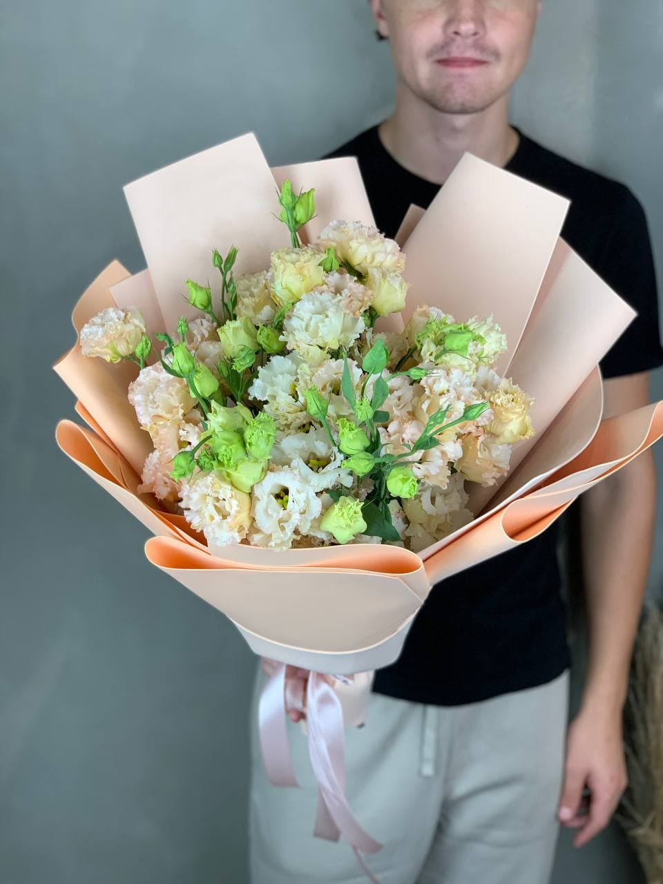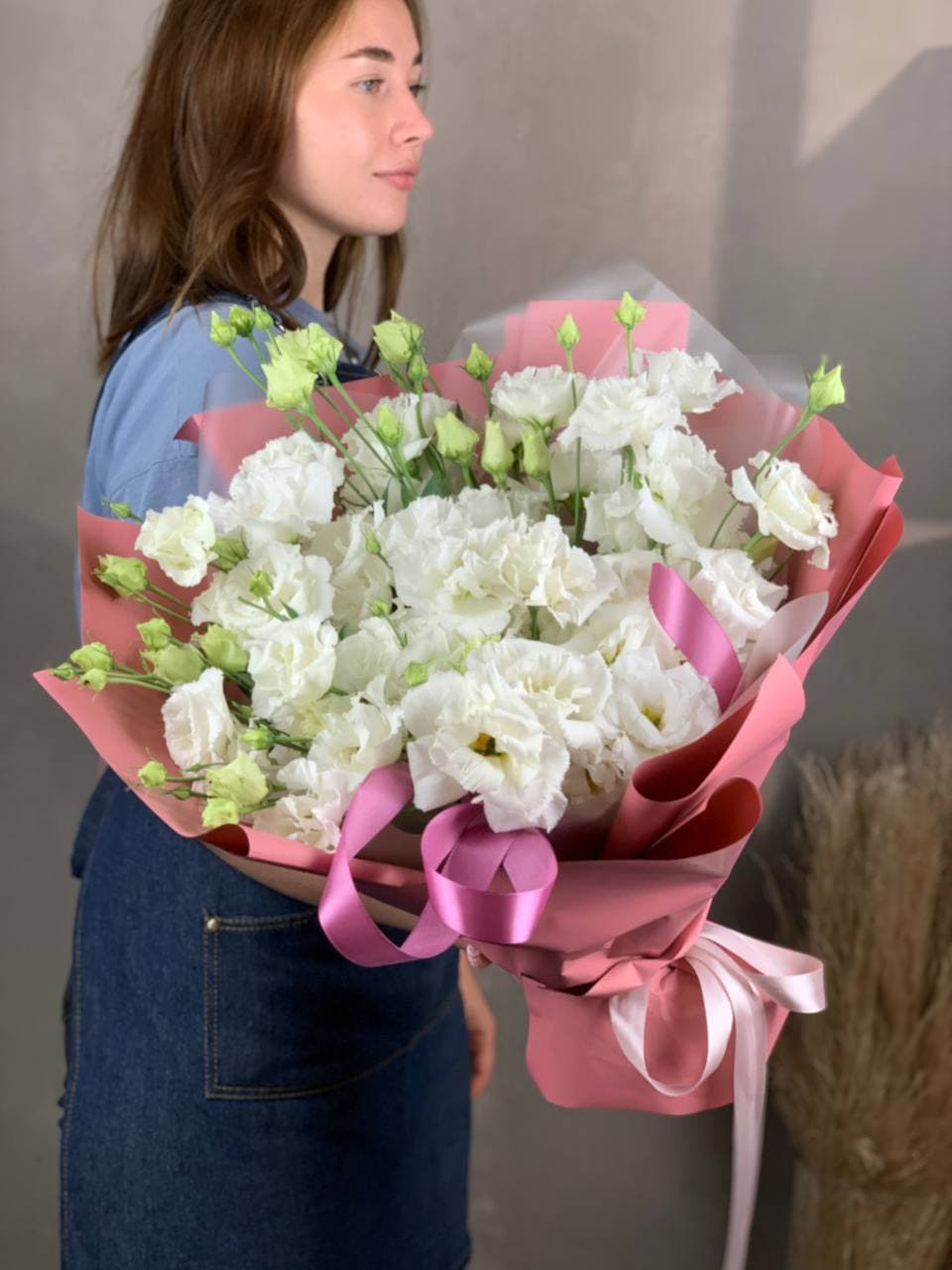 эустома - 21 шт., лента, дизайнерская упаковка.