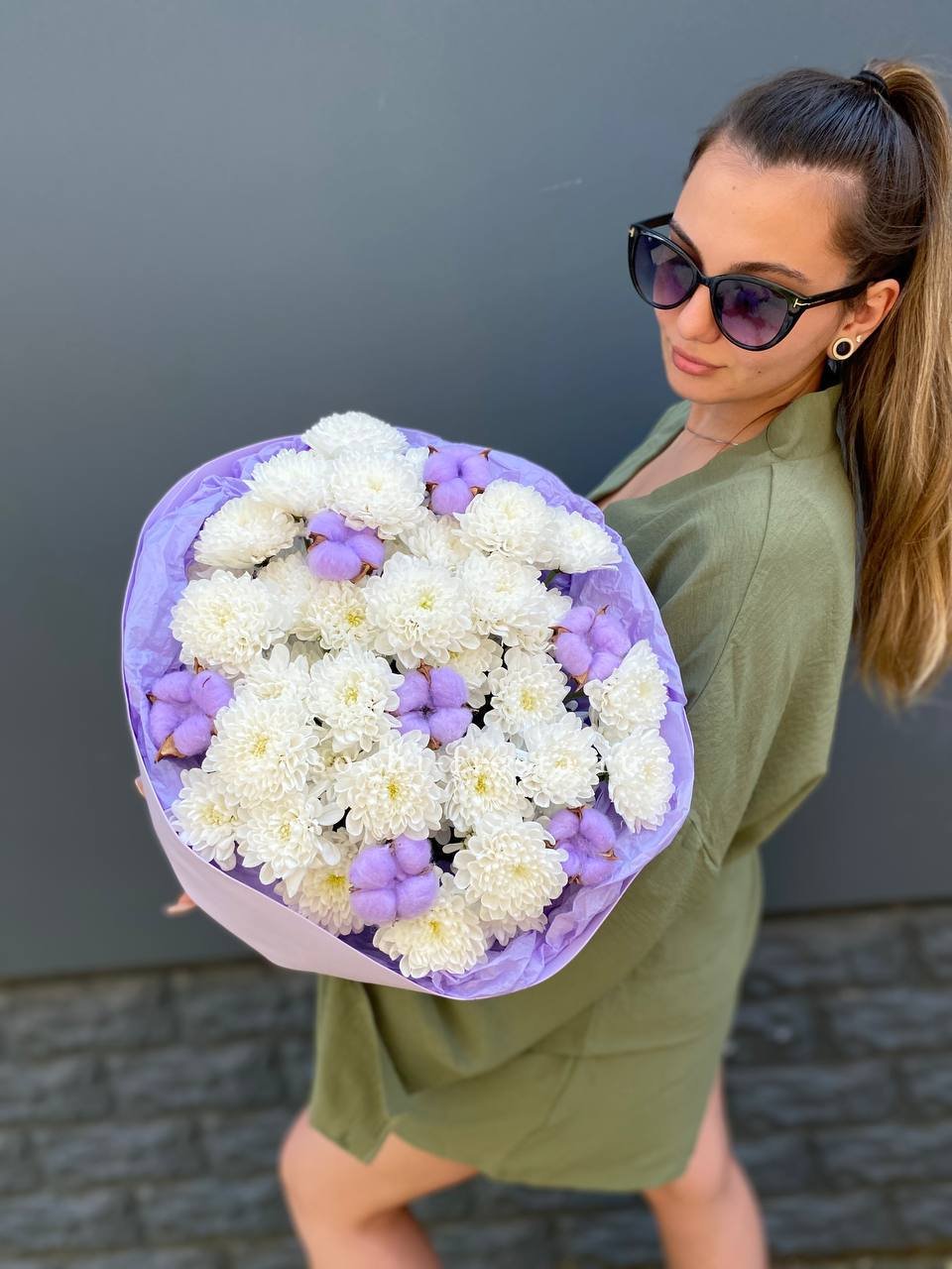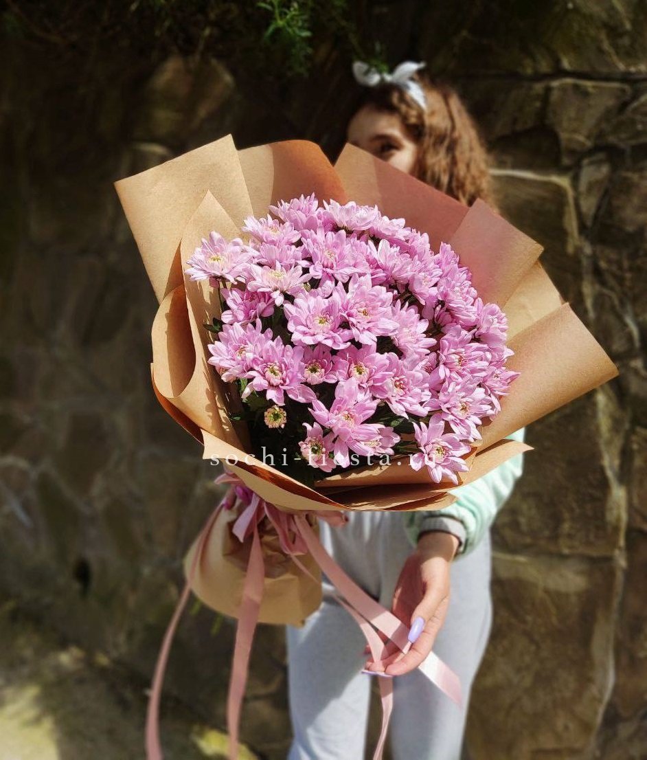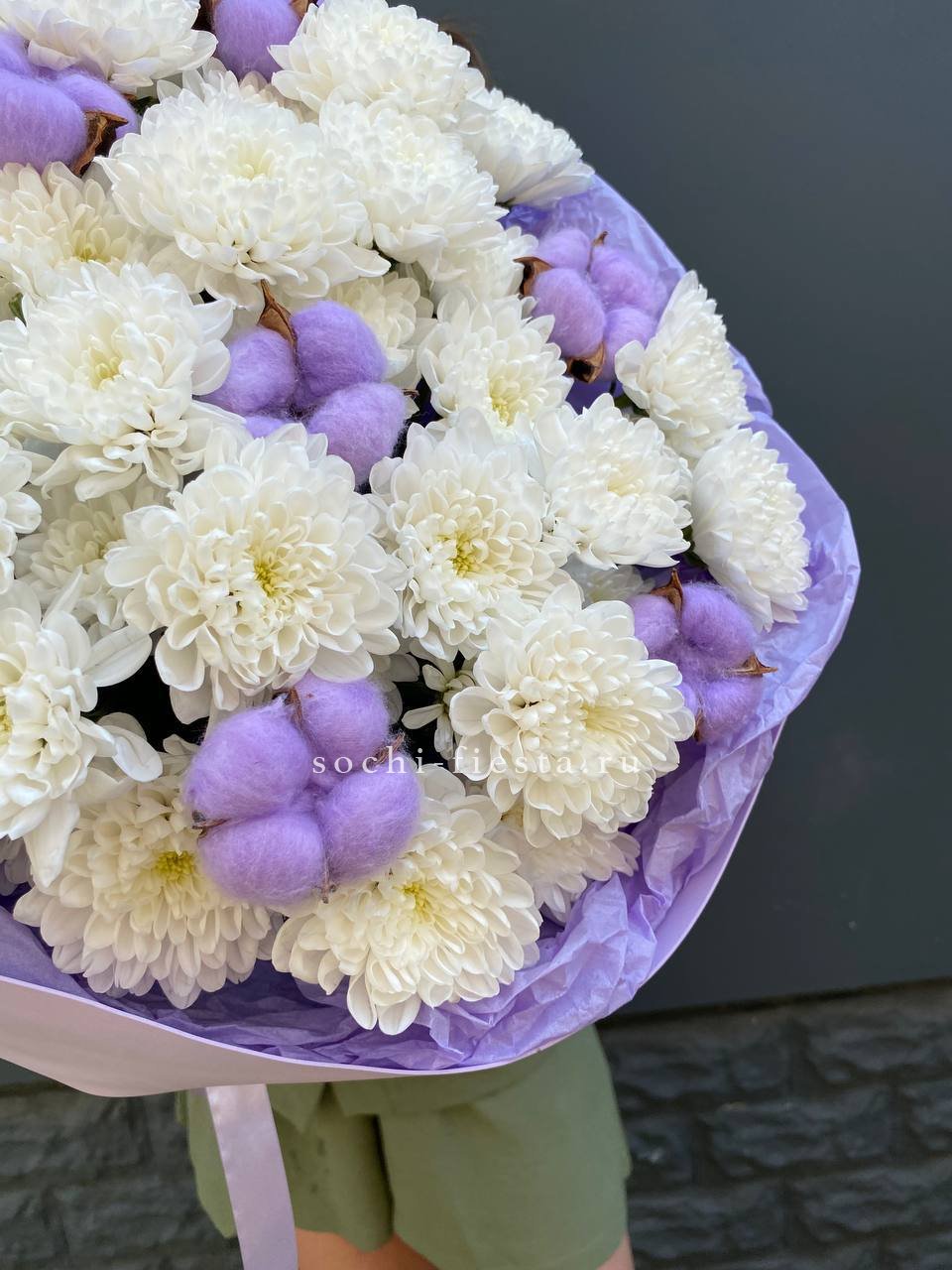 хризантема кустовая - 9 шт., лагурус, пленка,  лента.