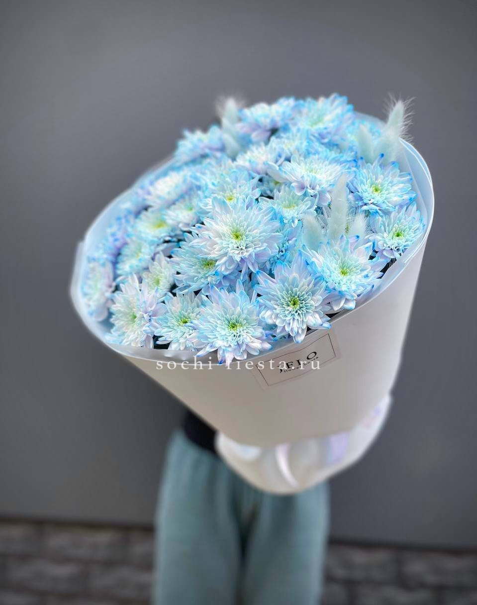 Пятнадцать веток кустовой хризантемы в натуральном крафте. Множество мелких соцветий формируют пышную шапку с естественной россыпью бутонов, подчёркнутую простотой оформления.