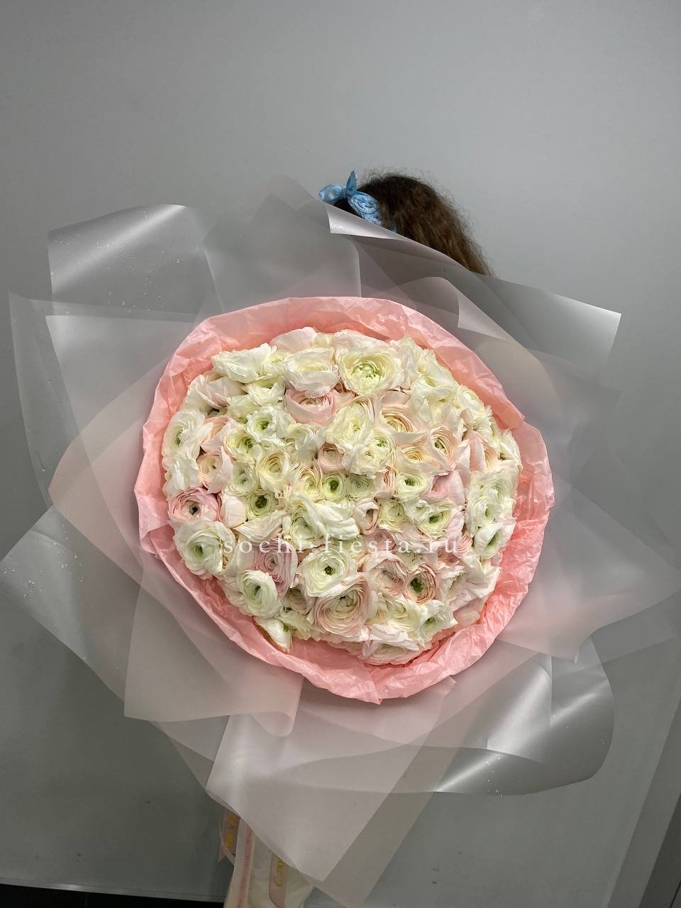 микс охапки ранункулюсов в нежном оформлении Количество можно согласовать у менеджера) Ранункулюсы- нежные цветы и большое количество собирается в плотную сборку)Такой объём лучше заказывать за 1.5 недели)