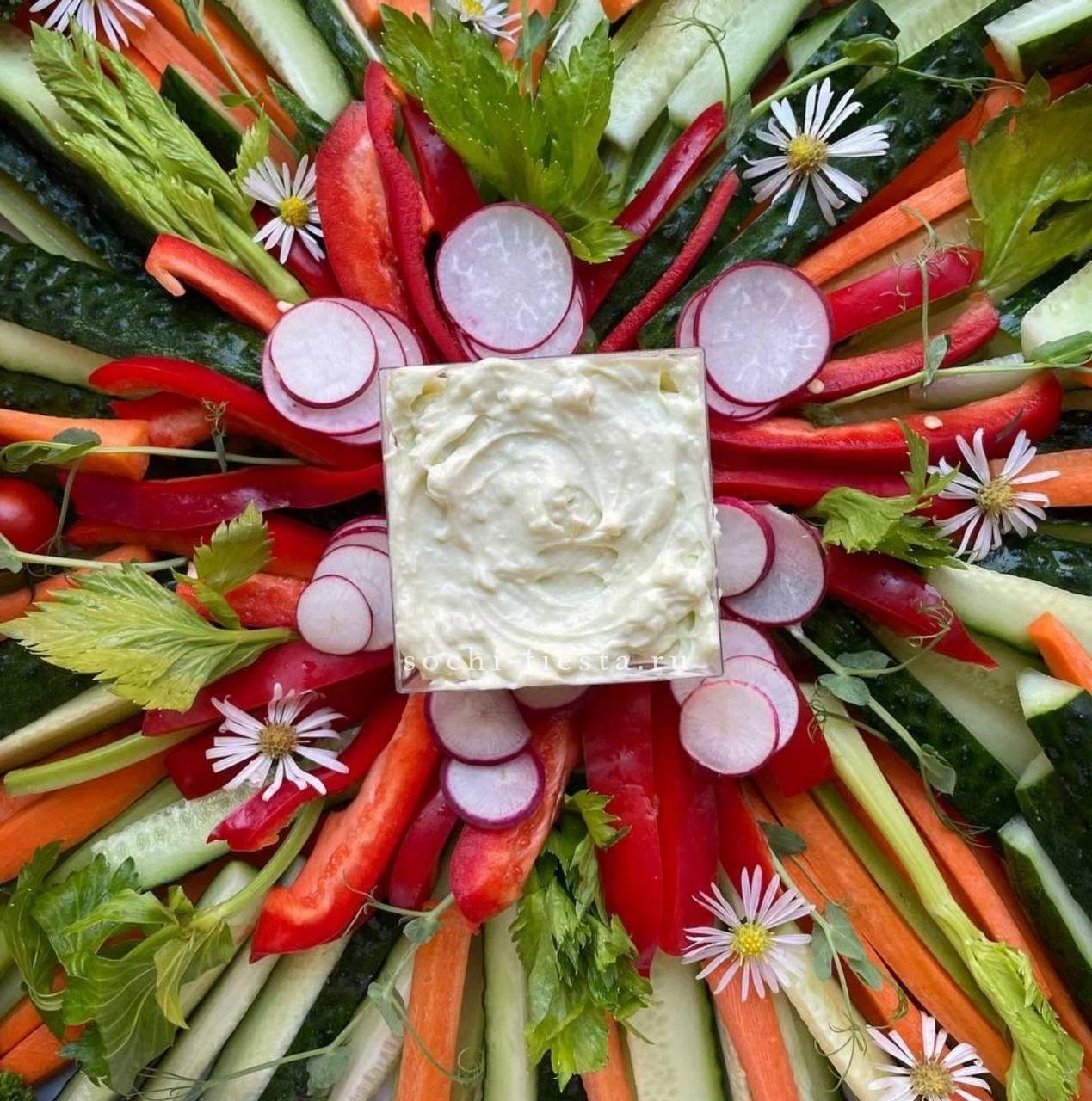 конвертики с овощами и ветчиной- 5 шт. Мини тосты с лососем, редисом и лимоном- 5 шт. Тарталетки с рийетом из лосося- 5 шт. Яйцо в пикантной начинкой из сыра- 5 шт.