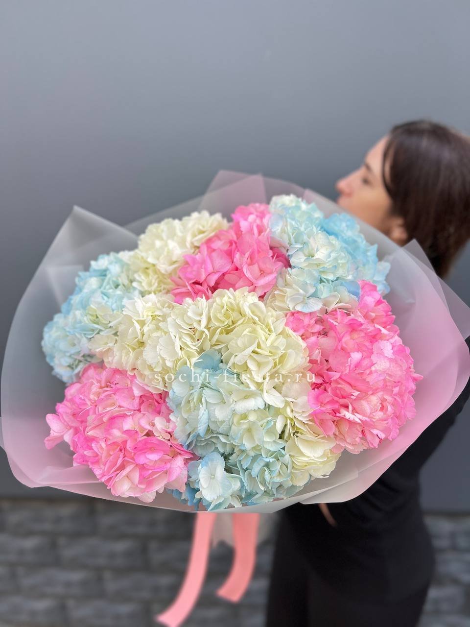 Семь белоснежных соцветий собраны в плотный объёмный силуэт. Гортензии Flakes создают ощущение летней свежести и спокойной гармонии. Монобукет для тех, кто ценит чистоту формы и природную красоту.