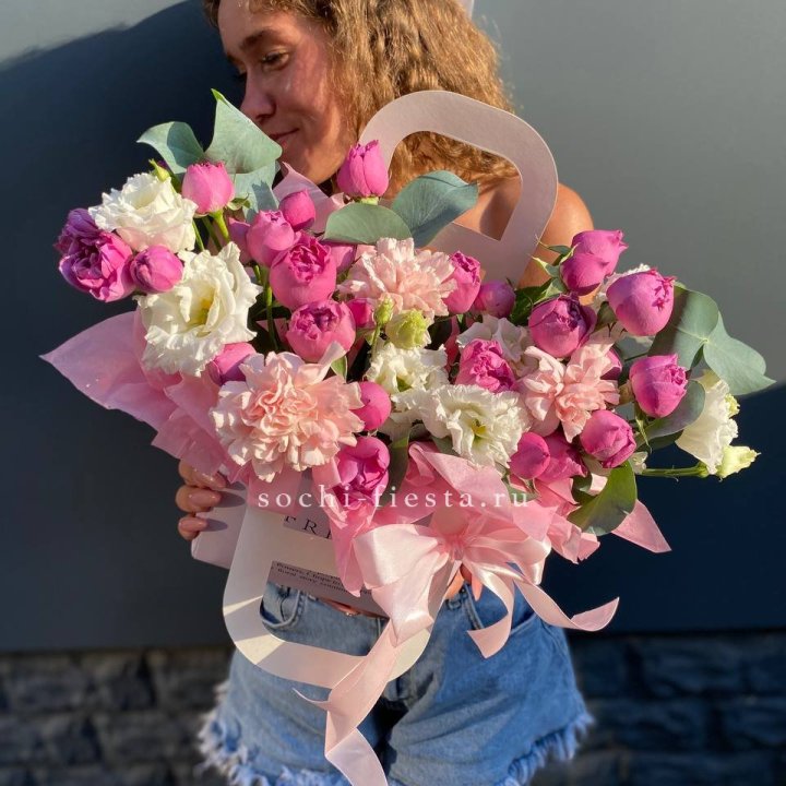 Размер выбирается по повод. Коллеге в Стерлитамаке — M или L. Юбилей родителей — XL. Выписка из роддома — L в пудровой палитре. Корпоративный юбилей — XXL. Романтический подарок — M или L в яркой палитре.