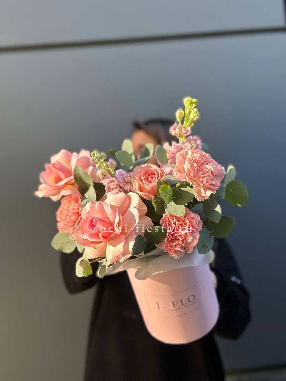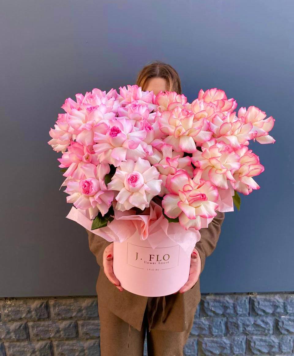 Композиция в светлом цилиндре выдержана в единой нежно-розовой палитре. Оттенки перетекают один в другой, создавая спокойное и цельное визуальное впечатление.