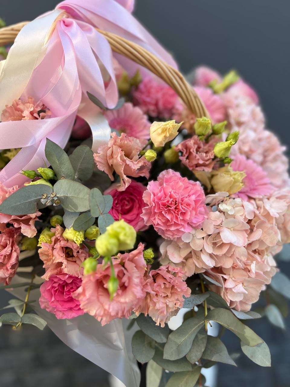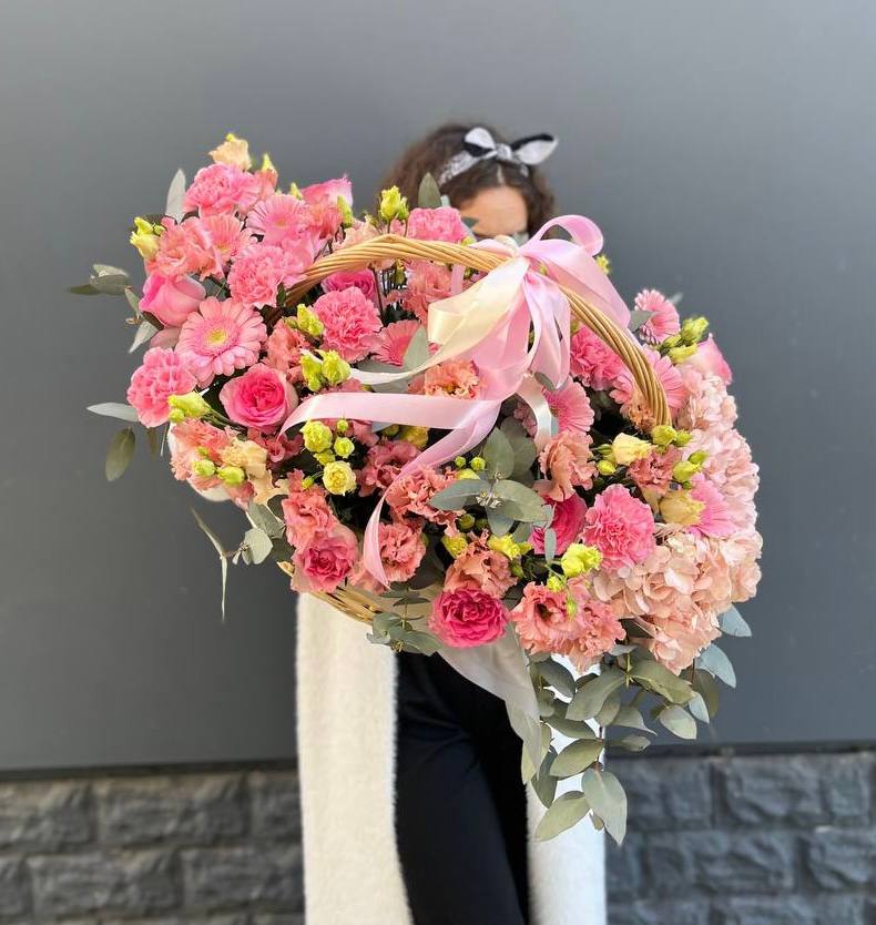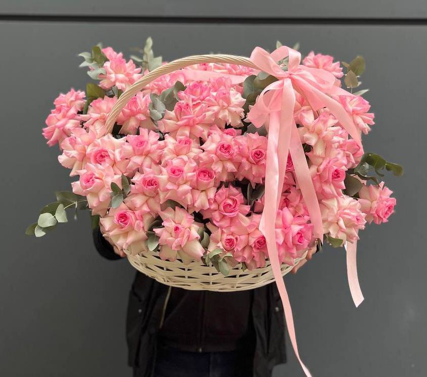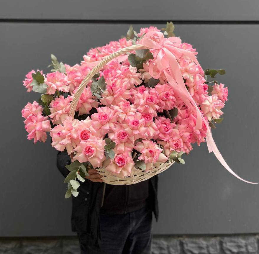 Пятьсот пятьдесят пять роз в корзине с персональной надписью — это целая инсталляция из живых цветов. Объём композиции впечатляет масштабом и создаёт незабываемое визуальное присутствие.