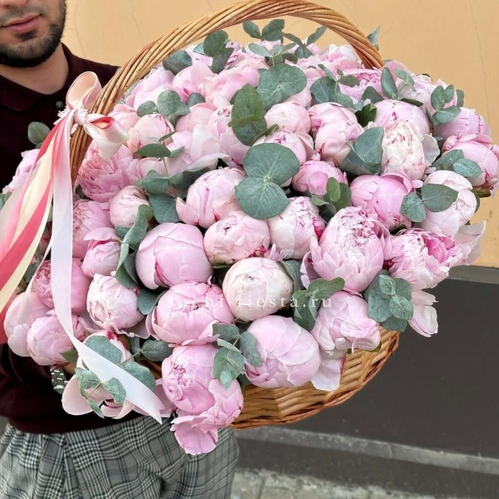 Состав корзин в Стерлитамаке определяется текущими поставками и сезоном. Розы Freedom, Mondial, Cappuccino — для классических куполообразных аранжировок. Пионы в мае-июне из свежих поставок: Sarah Bernhardt, Red Charm, Bowl of Cream — главный сезонный продукт. Хризантема, альстромерия, гербера — для объёмных торжественных наполнений. Эустома, ранункули — для садовых корзин. Флорист строит состав под конкретный запрос.