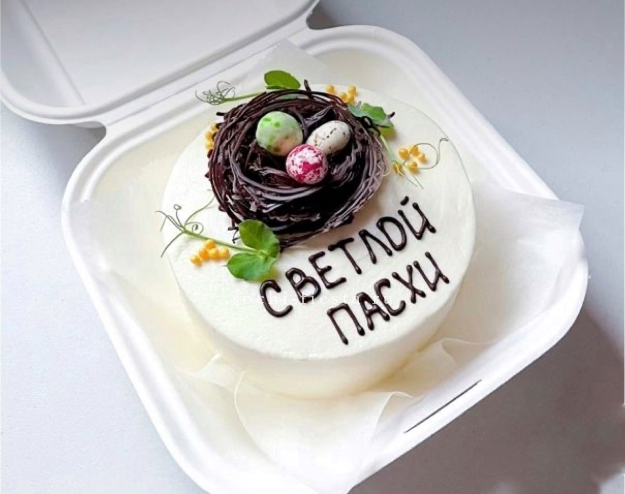Весенняя композиция объединяет пушистые ветви вербы с бутонами белых роз и соцветиями сирени. Диантусы и озотамнус создают объёмную текстуру, а сама форма бокса делает композицию устойчивой и завершённой. Подходит для светлых праздников и семейных встреч.