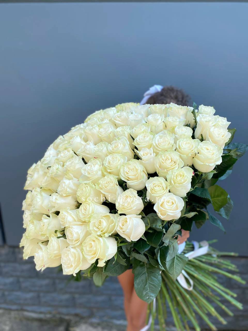белые розы 35 шт., лента, упаковка на выборВы можете выбрать любое количество.