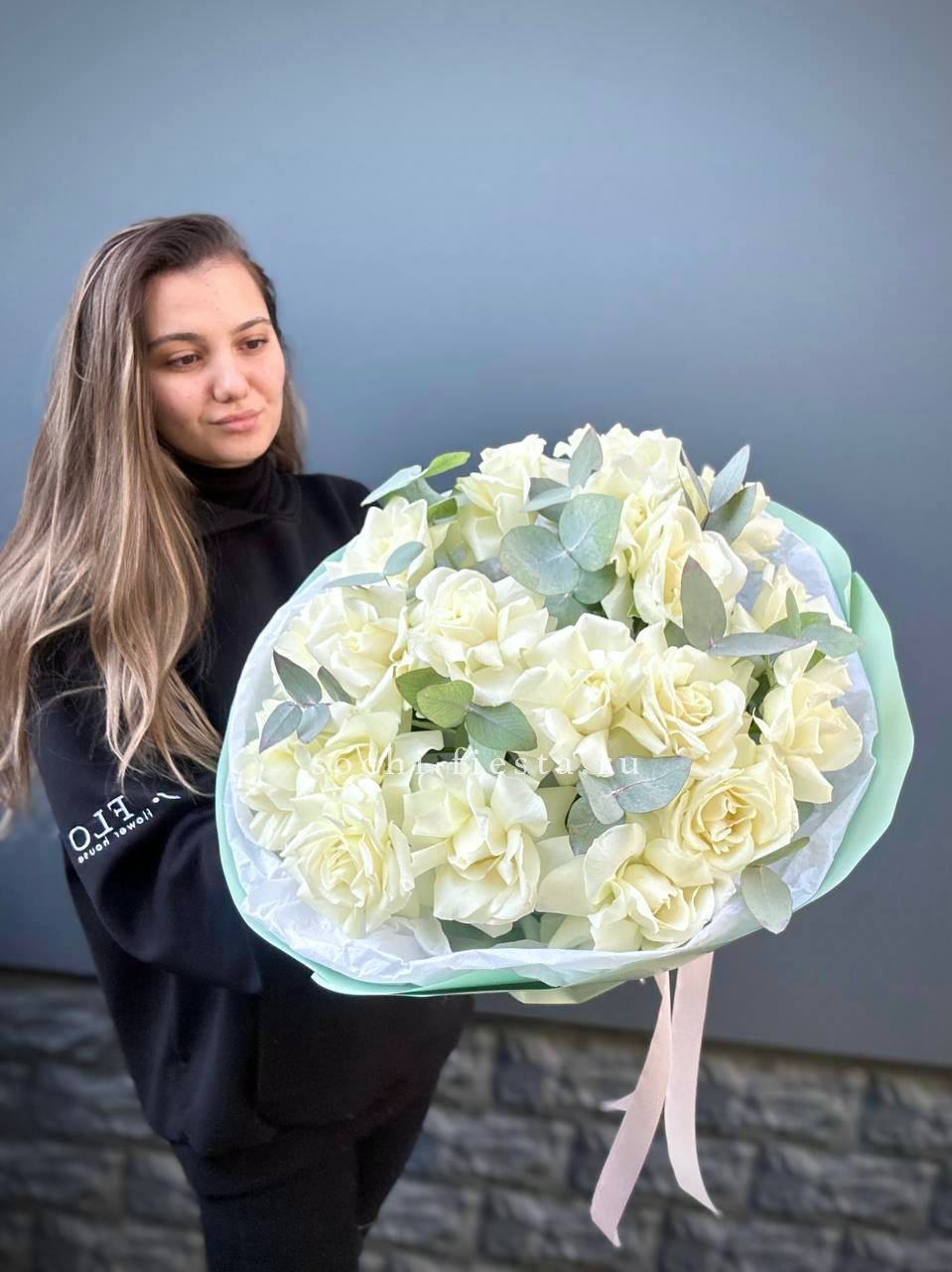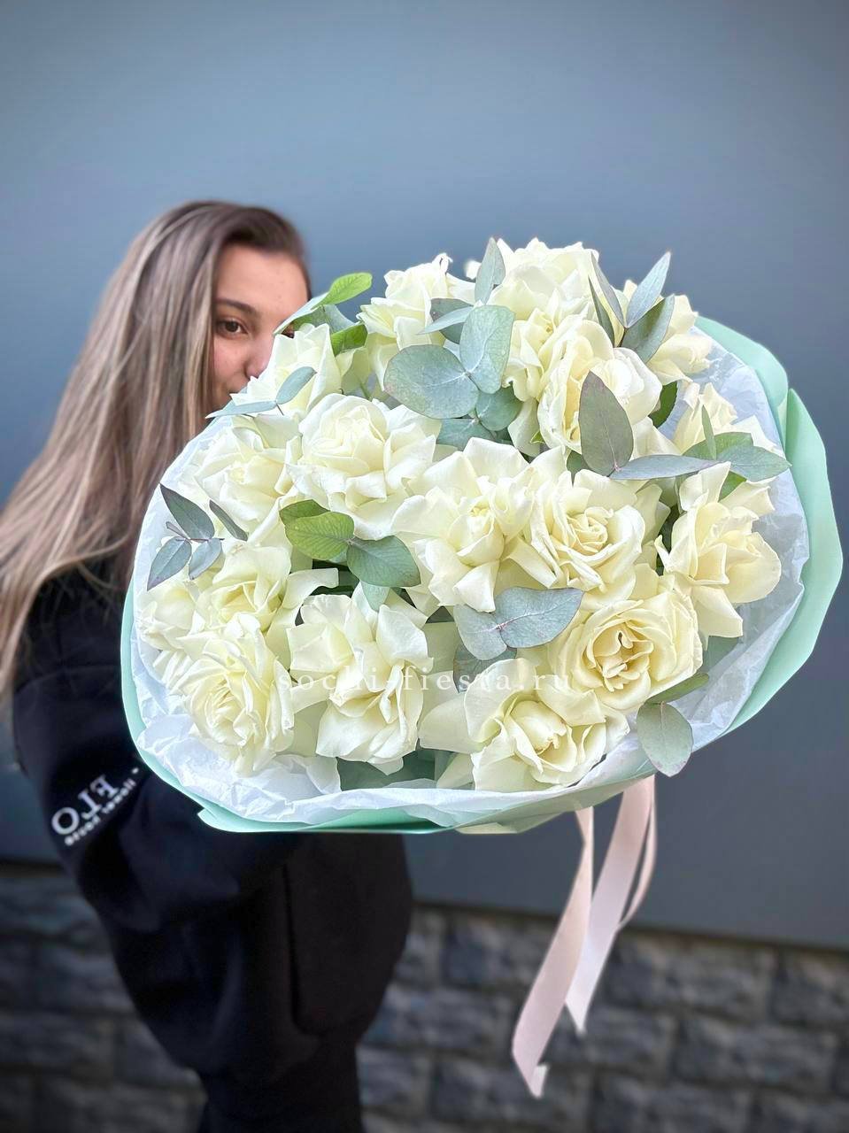 вывернутые розы, эвкалипт, лента, авторская упаковка.
