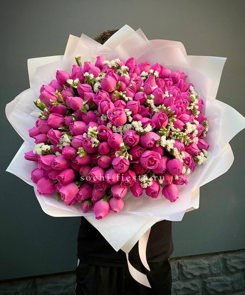 Мы работаем только со свежими цветами — букеты радуют от 7 до 14 дней и дольше при правильном уходе.