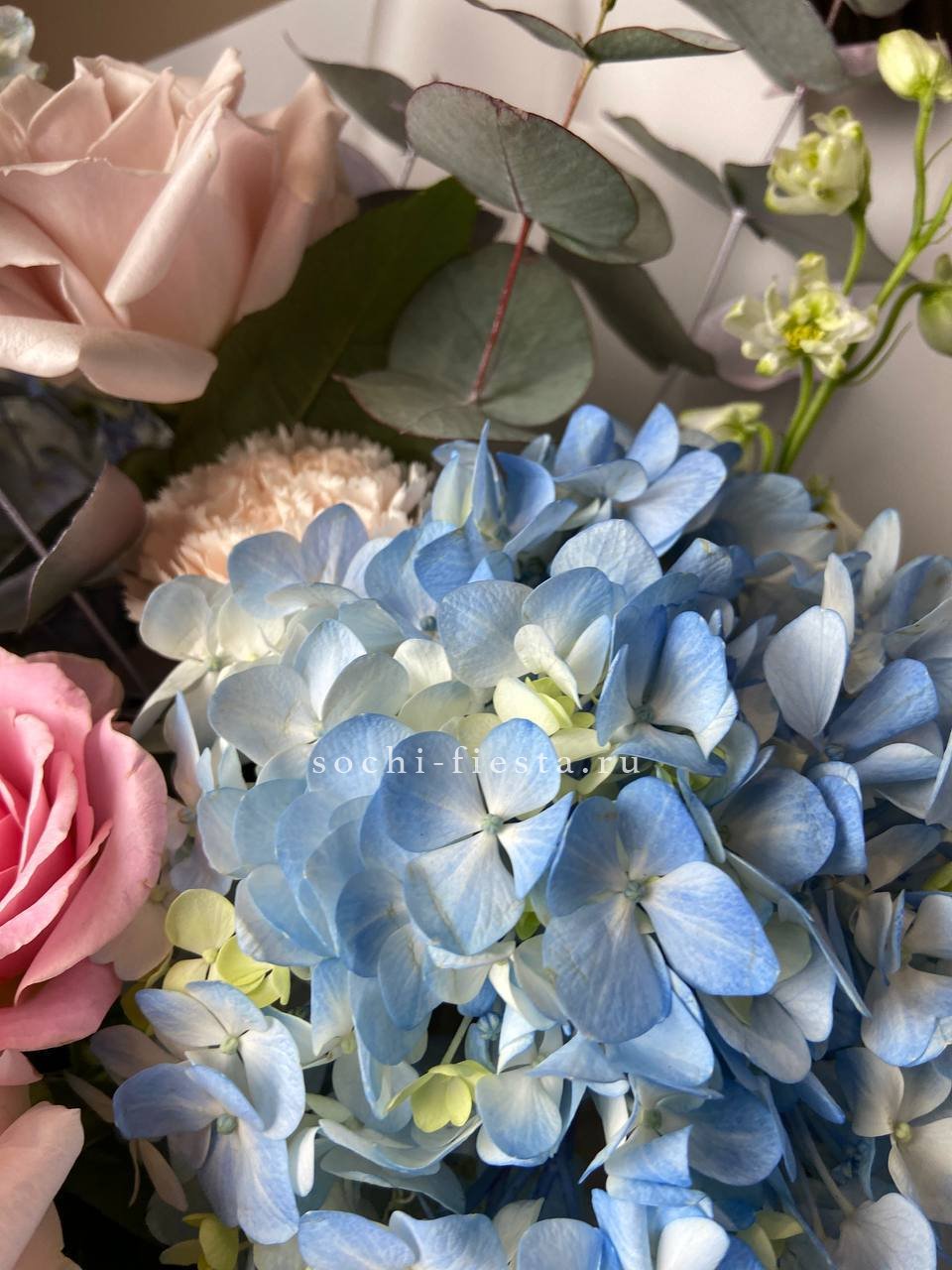 Букет гортензии и кустовых роз
