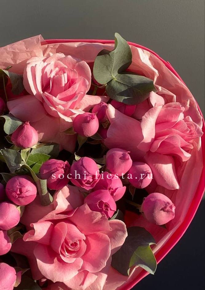 розы, пионовидные розы, эустома, диантусы, гортензия, эвкалипт, лента, фоамиран, тишью.